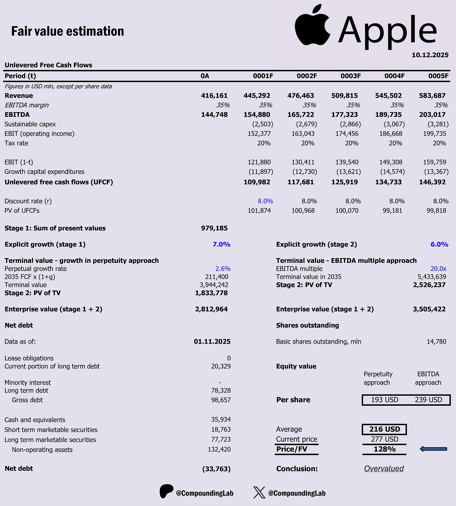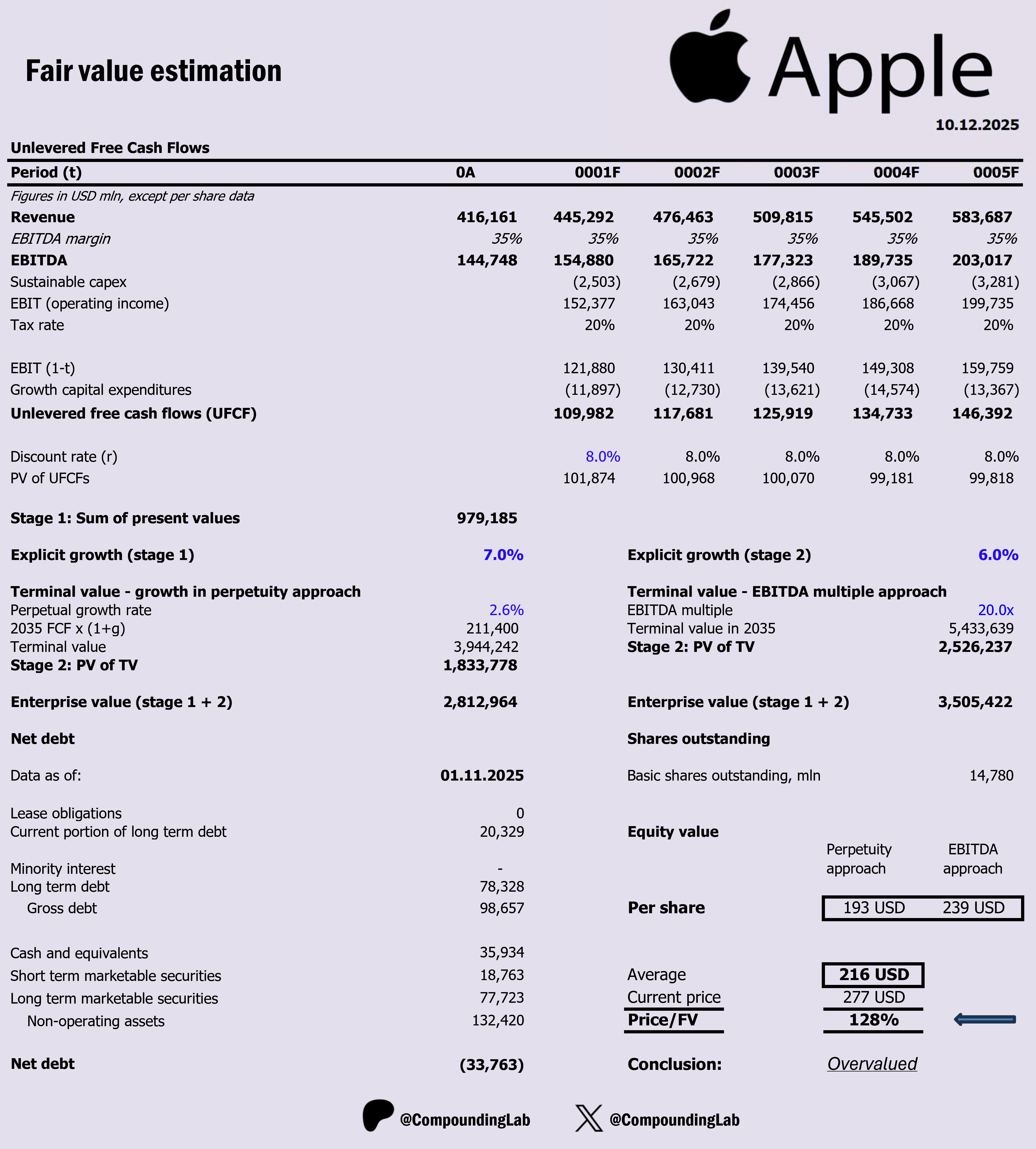 $AAPL DCF valuation